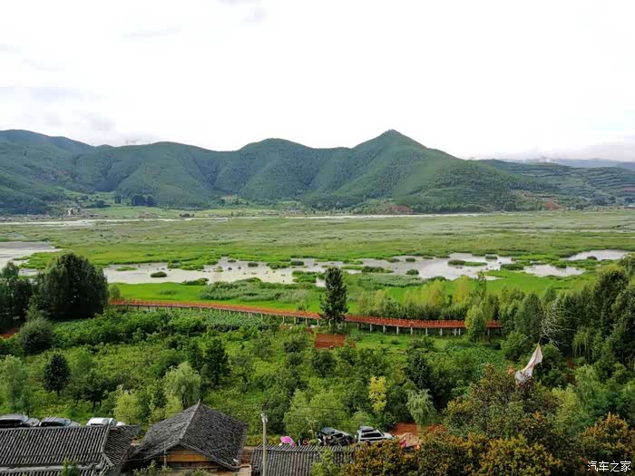 早晨起来,引入眼帘的是客栈前的草海和长长的走婚桥