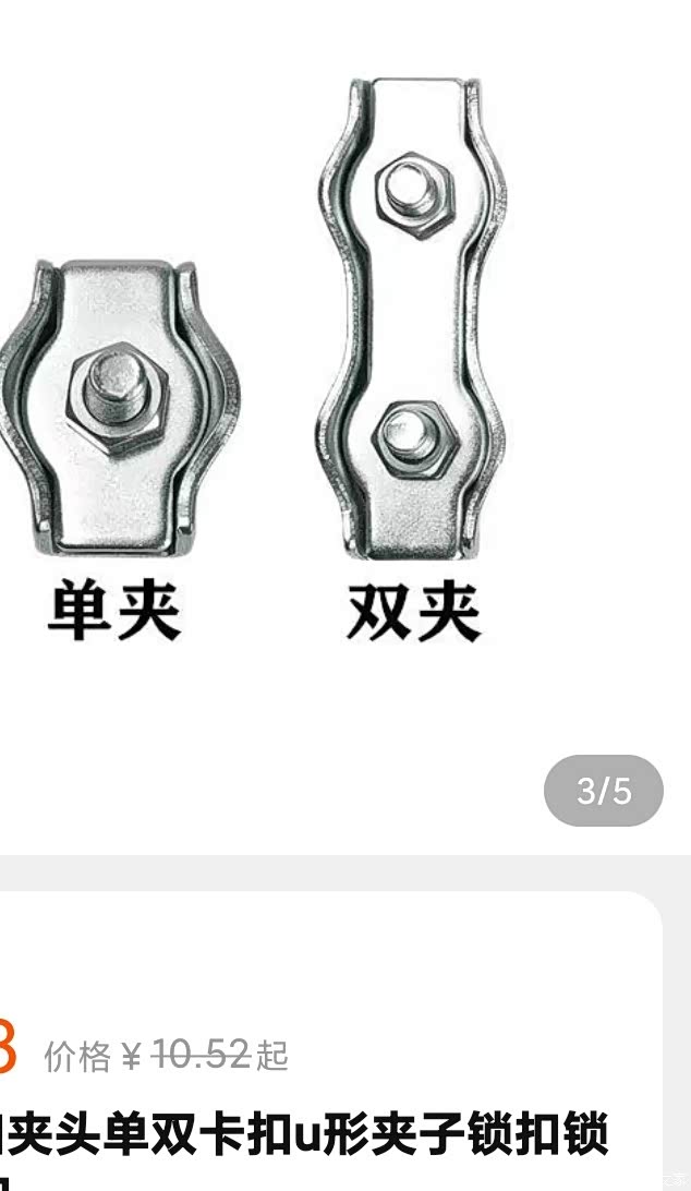 钢丝绳夹子三个(实体店没找到合适的,我用接线端子代替)