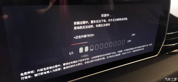 根据提示,保持车辆停靠状态下接受升级,升级过程中无法使用车辆……