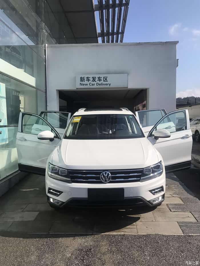 我个人比较看好途观L,但是媳妇儿喜欢荣放,因为她朋友开的就是荣放。于是我们分别看了这两款车,相比之下空间上还是途观更大一些,而且行驶感受也比较好,毕竟德系底盘还是扎实一些。期间都去看过实车试驾过,整体感觉就是各有各的优点。去4S店看过实车之后媳妇儿也同意了我的意见,所以还是订了途观L,和之前途观相比加长之后,空间确实更大了,尤其是后排腿部空间非常充裕,媳妇说坐着还是很舒服的。刚看到这款车就被这款车的外观设计所吸引,这款车的整体设计稳重大气,比较硬派。颜色上我偏向于黑色,但媳妇更喜欢白色,最后还是听了媳妇的,白色车真显大啊。一大早收拾好,就准备去提车了,特写此贴,记录下。