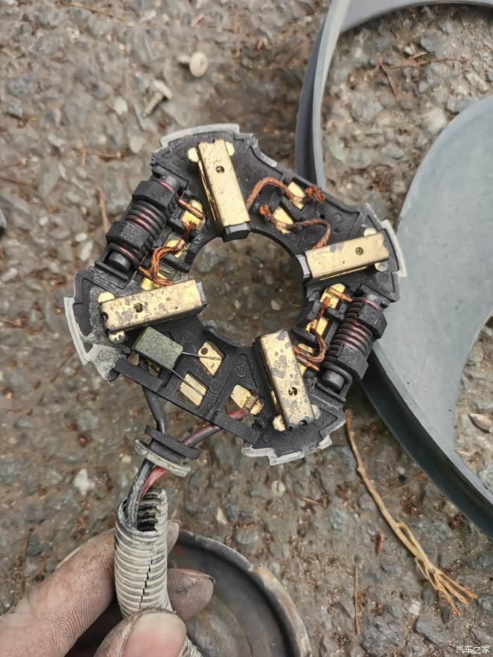 在查询了一些资料和论坛上的车友遇到的相似问题,最后将问题定在碳刷上,当碳刷快用尽时,碳刷与转子的接触力不够遂导致无法启动/启动困难,与家用风扇情况类似,有刷电机原理在这里不再赘述了,有兴趣的可以自行去了解。