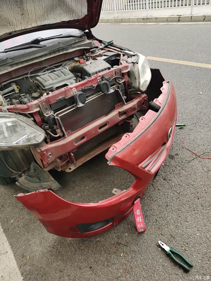 前阵子发现车子时不时报高温警报,打着车子低速跑一会就高温,有时跑一会又没了,打开机舱盖,发觉很热且水箱风扇不转动,拿螺丝刀拨一下才开始转动,过一会发动机警报消失,遂确定水箱风扇故障(有时跑一会又显示的原因是:当高速的风吹进水箱时,会给扇叶一个压力致使风扇转动)