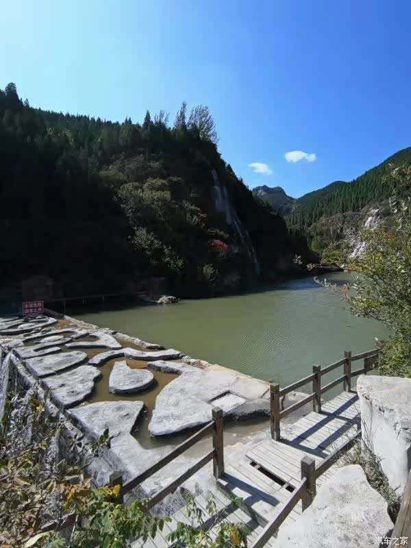 沿着山路一直走,来到了一处水上走廊,阳光正好,微风不燥。
