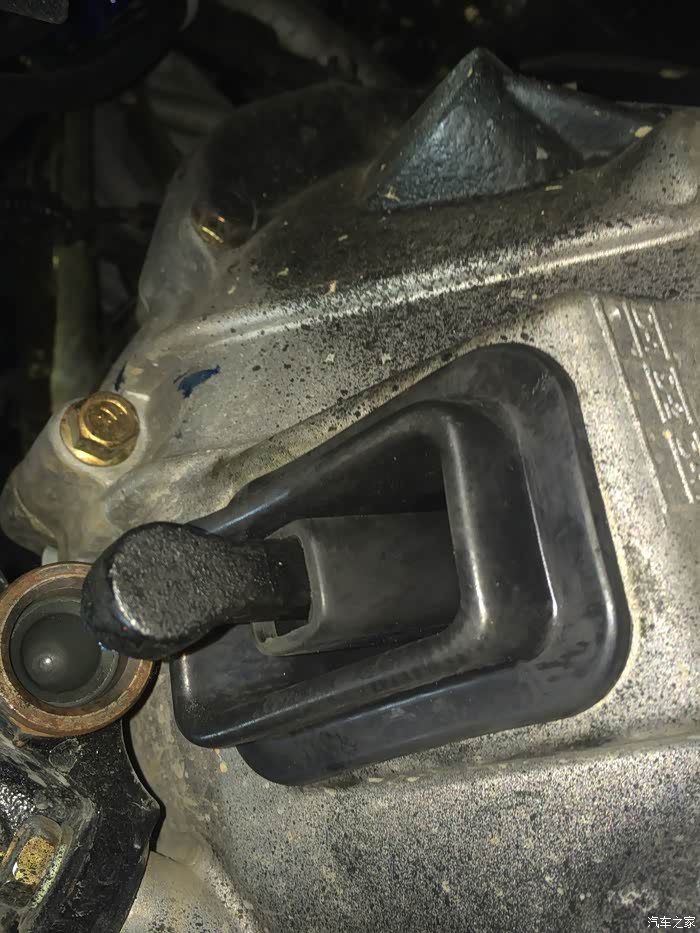 更换拨叉防尘套以前,先往变速箱的拨叉那里打点油
