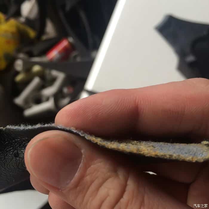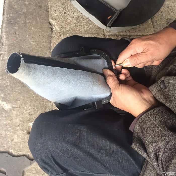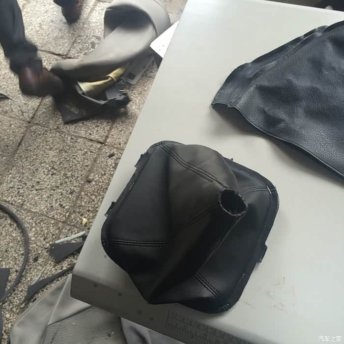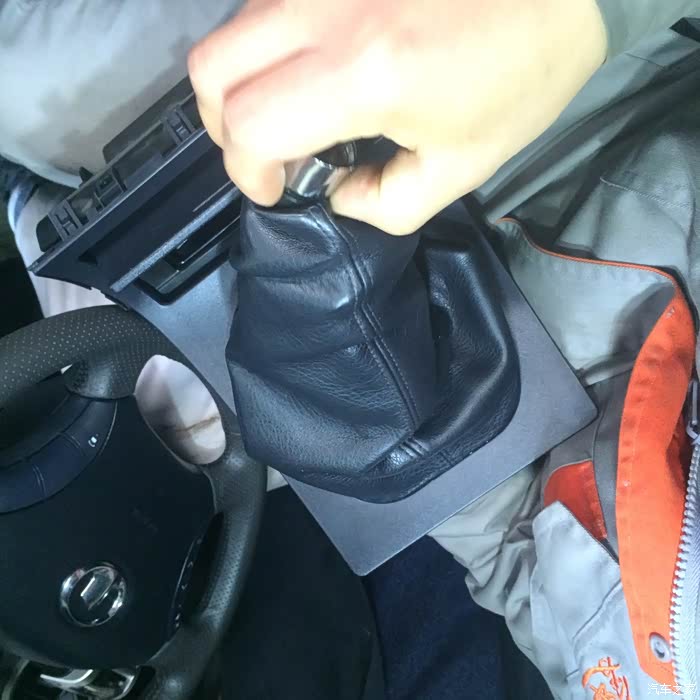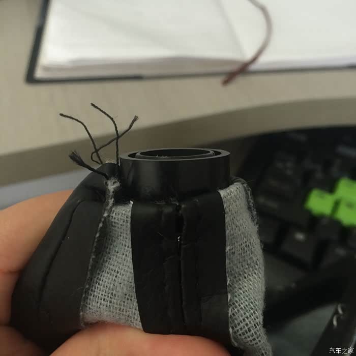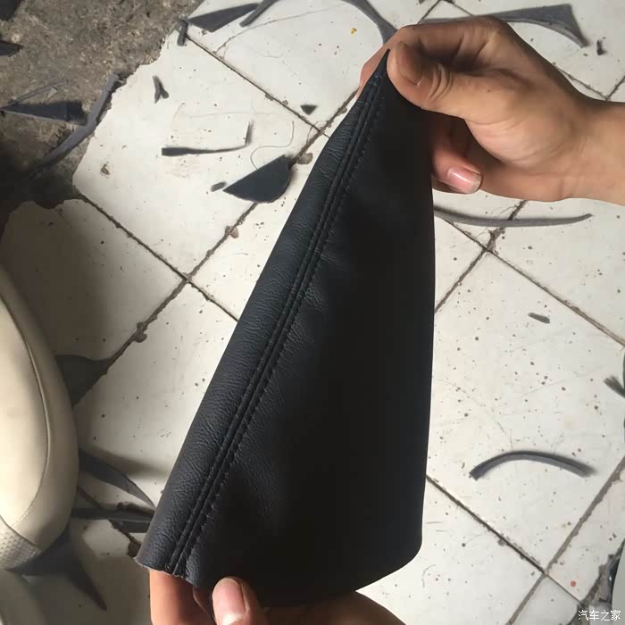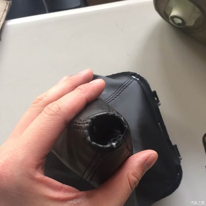 这是原车的档把防尘套,可以看到,原车的档把防尘套皮子很薄,几乎是最低档的超纤皮,比我后来定做的要薄得多