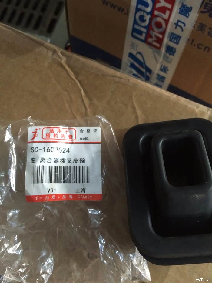 至于拨叉防尘套为什么要换呢,是因为有一次去保养车辆,因为之前在论坛里发现有很多人的拨叉防尘套坏了,进水以后踩离合器吱呀吱呀响,所以,自己本能地检查了下,结果,很不幸,我的也中招了,长城车的橡胶件爱出小问题不得不说是一个痼疾,不知道现在的H8和H9有没有改进,发现这个问题时,我的车才跑了9000公里啊。。。。所以,我干脆不要原厂件了,直接在网上淘了个猎豹越野车用的,用到2017年,跑到了35000多公里了,还是什么问题也没有,哈弗H5和猎豹越野车的变速箱不知道是不是都是仿自三菱的,但猎豹的橡胶件似乎比哈弗的要好,好了,上图吧: