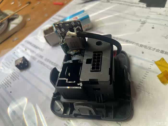 G3原车带这两个充电口均是5V/2A,不能满足快充需求,拆开后查看内部有空间可安装快充模块,随折腾之。。。