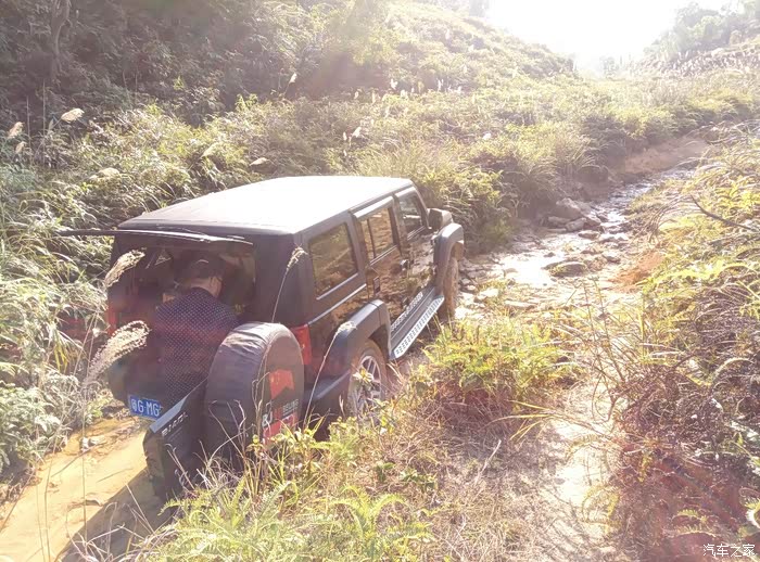 雨水冲刷的地形,这里需要下车观察地形,寻找通过路线才行