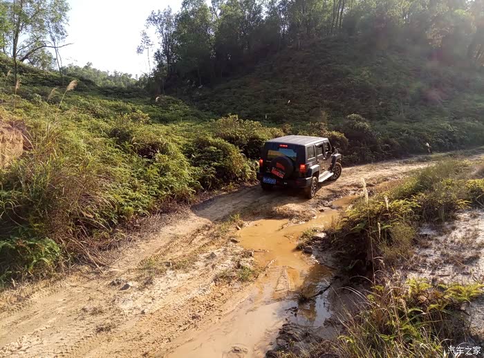 三岭山是黄泥沙石地貌,由于雨水的冲刷,泥路上的沟沟坎坎和石头都比较多,路况还是很颠簸的。劲炫是承载式的车身,先天性就不如非承载式车身的硬派越野那样有大梁来保持车身的刚性,不过,相对来说,劲炫的底盘结构也算得上是比较硬朗的了,底盘有加强的纵向框架结构来确保整体车身的刚性。所以在通过普通颠簸不平的路面时,车身也不至于变形得太严重,即使路过这样的非铺装农耕路面也没有感觉到底盘松松散散的感觉。