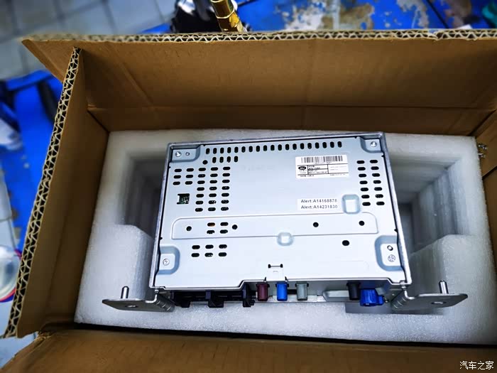 汽车的车机就相当于电脑的主机,负责整个汽车电子设备,包括娱乐系统。既然判断是车机出现问题,于是4S店反馈此问题要上报厂家核实,让回家耐心等待。大概过了十天左的时间,4s店来电说可以更换主机,让等厂家邮寄的主机到货后去更换,又等了一个礼拜。车机终于到货了,就是这个样子。