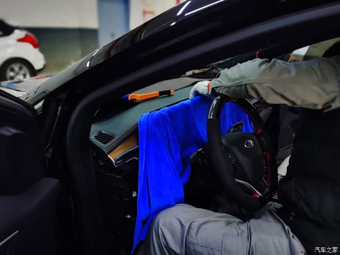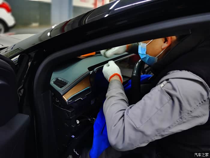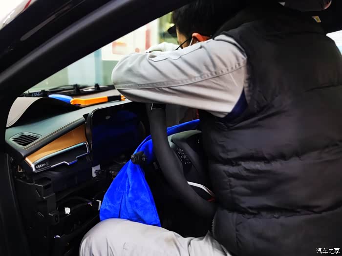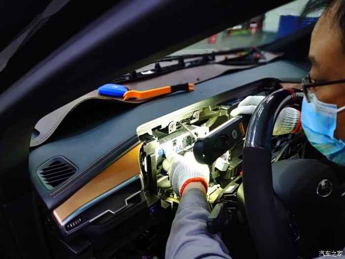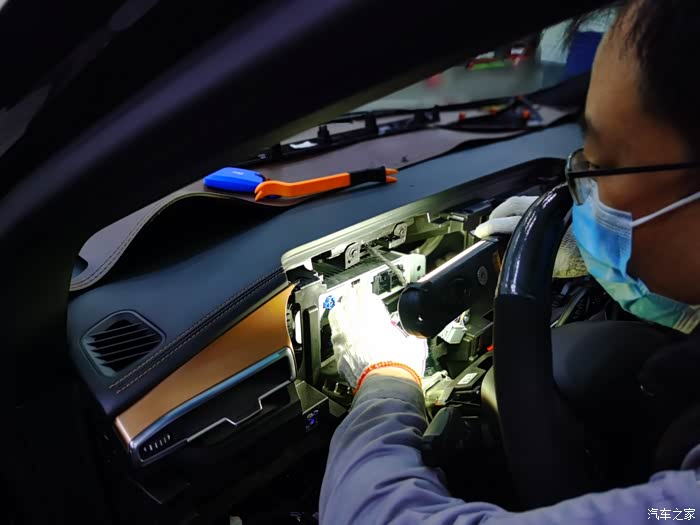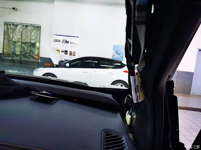 和师傅出去试车,麻烦了,还是收不到GPS信号。这让我心疼的,难道车还得再拆一遍吗?于是,开始排查是不是我说的GPS接收器的问题。查了查资料,老款锐界的接收器在前挡风玻璃下面。但师傅说锐界plus的接收器不知道在哪,说明书上也没有,他们也从来没有拆过,也从来遇到过类似的故障。怎么办呢?那就开始盲拆呗!我又开始心疼了,右侧A柱盖板也拆下来了,看是否在里面,结果没有,再接着拆其他部位,结果都没有发现,看看是否在前仪表台上的B&O音响下面,小心翘起一部分用手电往里面查找,终于发现了GPS接收器。