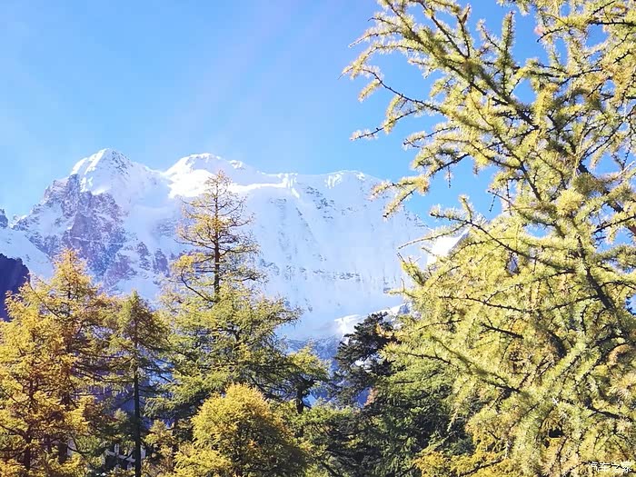 远处不知名的雪山峻拔美丽。