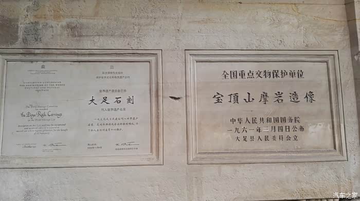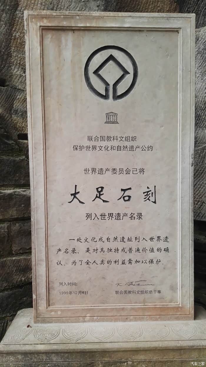1999年12月1日在摩洛哥历史文化名城马拉喀什举行的联合国教科文组织世界遗产委员会第23届会议上表决通过,将大足石刻中的北山、宝顶山、南山、石篆山、石门山五处摩崖造像,正式列入世界文化遗产。由于时间关系,我们此次游览的是宝顶山景区。