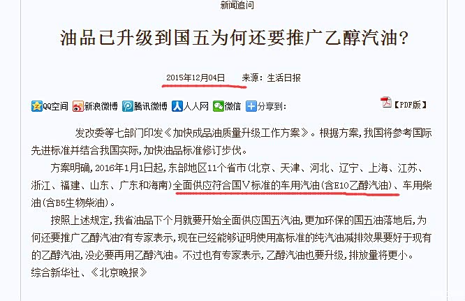 还有人说什么国五标准乙醇汽油云云。。。。,国五标准(GB18352.5-2.013中附录J 基准燃料要求中没有乙醇汽油,自己去翻翻看吧。倒是欧五标准(欧洲5阶段排放)中用这乙醇汽油。全世界用乙醇汽油的没有多少,南美洲比较多。