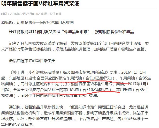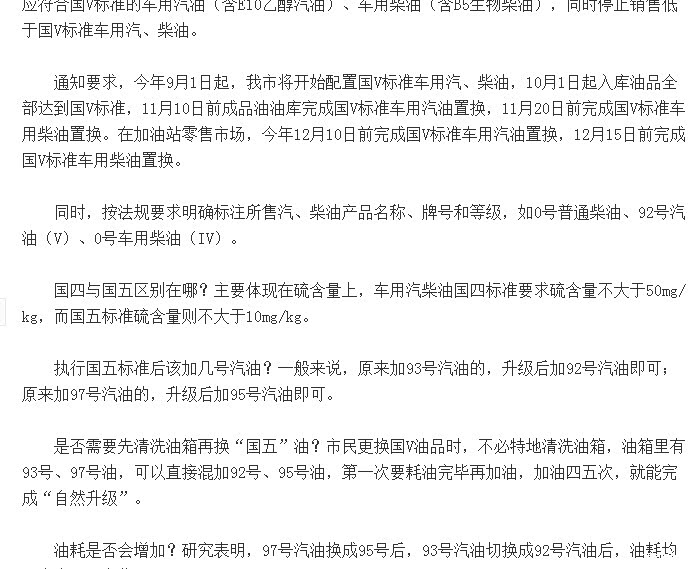 大气法实施,汽柴油要升级到国五标准。