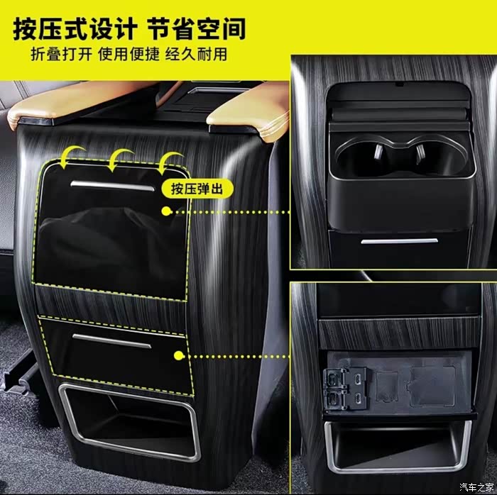 四、更换扶手箱后水杯架。原车的水杯架设计有些问题,碍事,不好看,自己购买更换了。