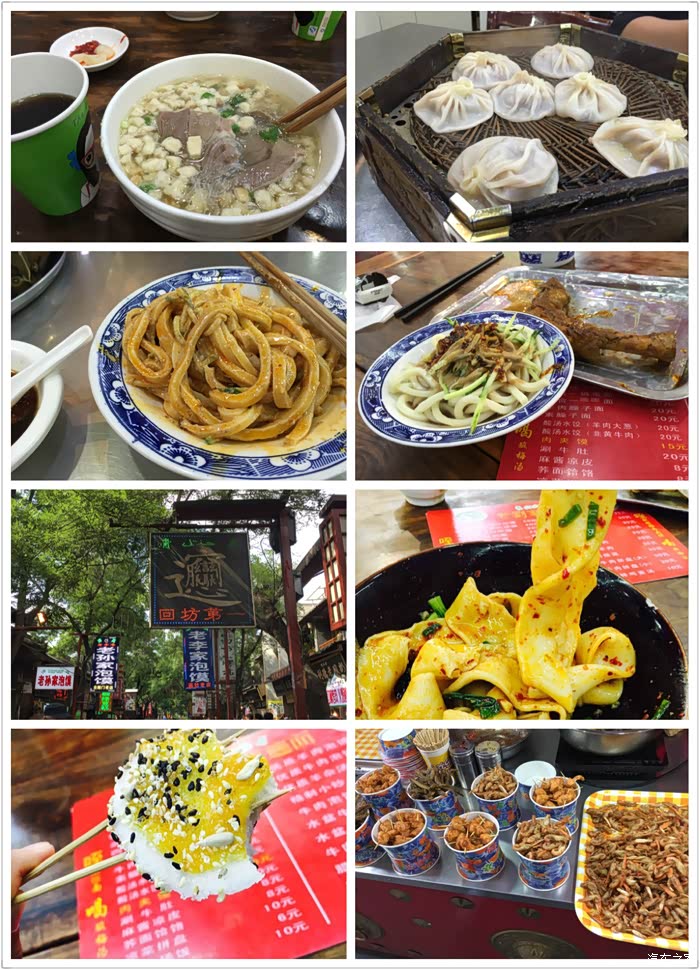 下山后我们睡到下午,然后坐大巴返回了西安市区。市区住宿好后,果断去了传说中的小吃街,回民街,西安的小吃名气不小,吃起来嘛 我觉得一般般,小吃还得看我大四川。。。。先去吃了羊肉泡馍,可能对他期望太高,发现不是我喜欢的,吃一次反正就不会在吃了。。。