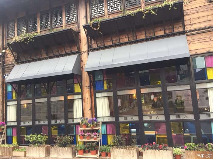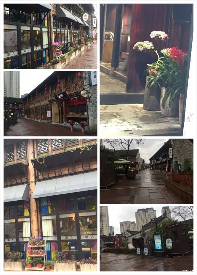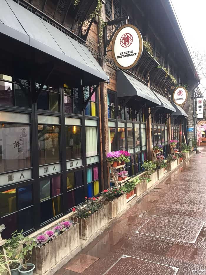 那儿的设计最让人叫绝:门,雕花的;灯,外包纤绳;招牌,老牌子 还有更能使人惊叹的 桃花店。灯黑色纤绳包裹着大型白炽灯,门木雕,桌子纯黄木头仿大理石,在外透过窗户,一颗颗巨型葱 长 在一块大石头上还留着潺潺之水。从头到尾绕出来,一家家形式、造型不同的店,使人焕然一新。