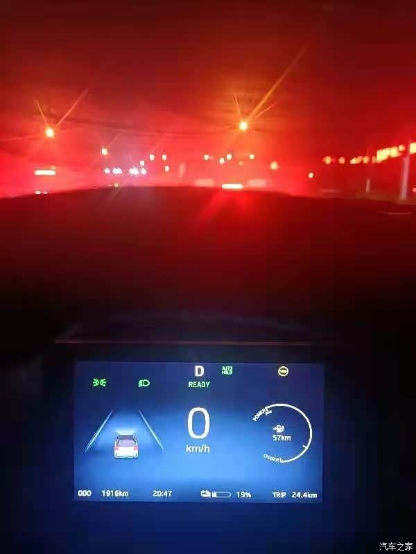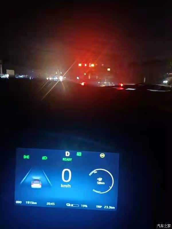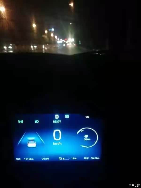 夜间行车TRIP显示26 公里后还显示19%的电量。路上经过了3个红绿灯