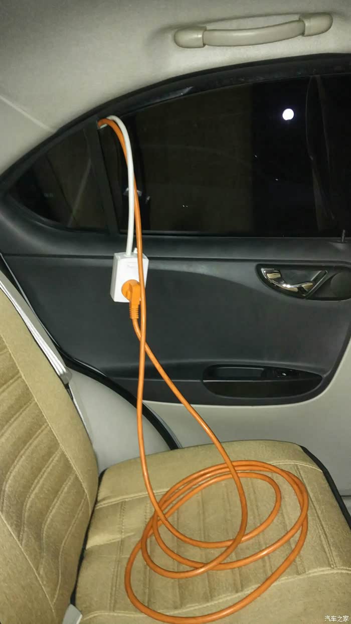 然后就是充电了,插头一查,往车子里一放,然后摇上窗户,线就不怕被偷了。