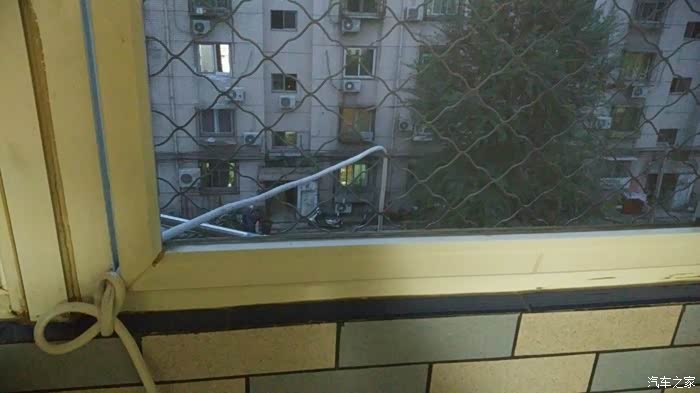 窗子上这里要打个节,关上窗户可以卡住,防止像孩子在楼下拽线。