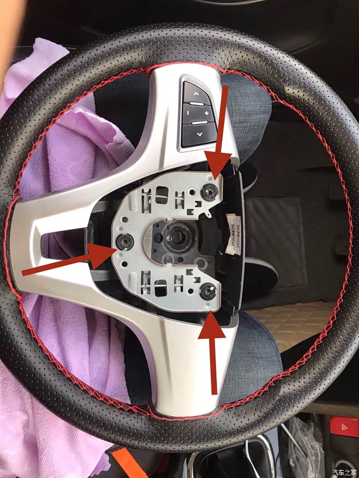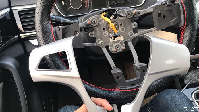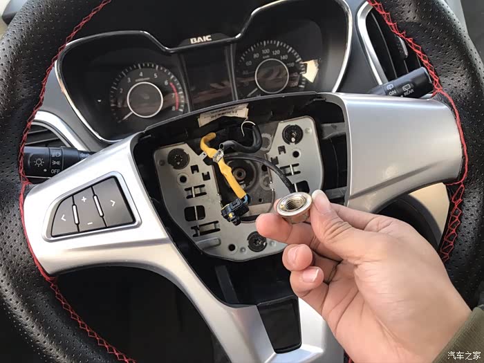 先来个特写,拆方向盘一定要方向回正这是重点