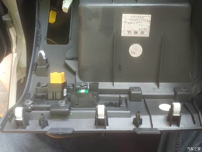 拔掉雾灯和电动后视镜的插头,储物格就下来了。拆掉储物格工作空间大多了。