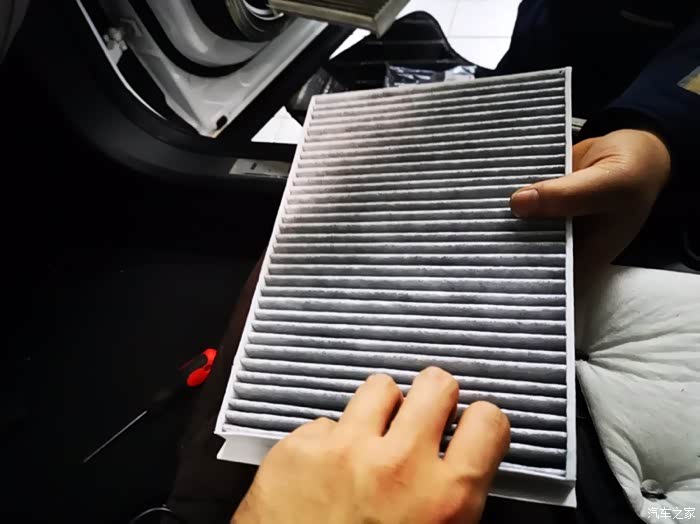 冬季尤其是在北方是用空调暖风的高峰期,空调使用的频率比夏天都高。夏天有的时候天气不热可以打开窗户自然风,而冬天只要开车出门就需要开启暖风。长时间是用暖风就容易出现空调滤芯的灰尘增多,造成阻塞空调滤芯的微小细孔,直接导致的就是暖风不热,制热效果慢,声音大,如果在天气晴好的白天还可以看到开启暖风的一瞬间整个车内都充满了灰尘,厂家说明书上说每次保养的时候更换空调滤,但是也得看使用频率,而我呢感觉出风效果不是那么大了,就考虑到空调滤脏了的问题,家隔壁就是售后,直接开过去更换一个新的空调滤,下面给大家看看更换的过程