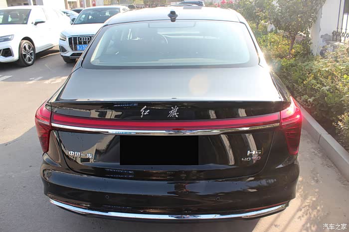 红旗H5的外观非常运动,前面车身压的比较低,后面稍微有一点点翘。流线造型非常顺畅,后屁股稍微撅起来一点,小鸭尾看起来也很性感。