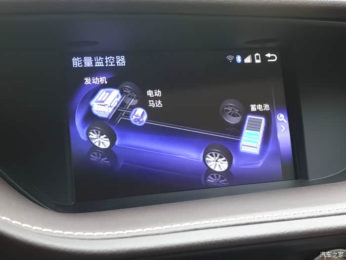 主显示屏上的能量监控器,可以显示电池能量等级状态,发动机和电动机启动状态,电池充放电情况。