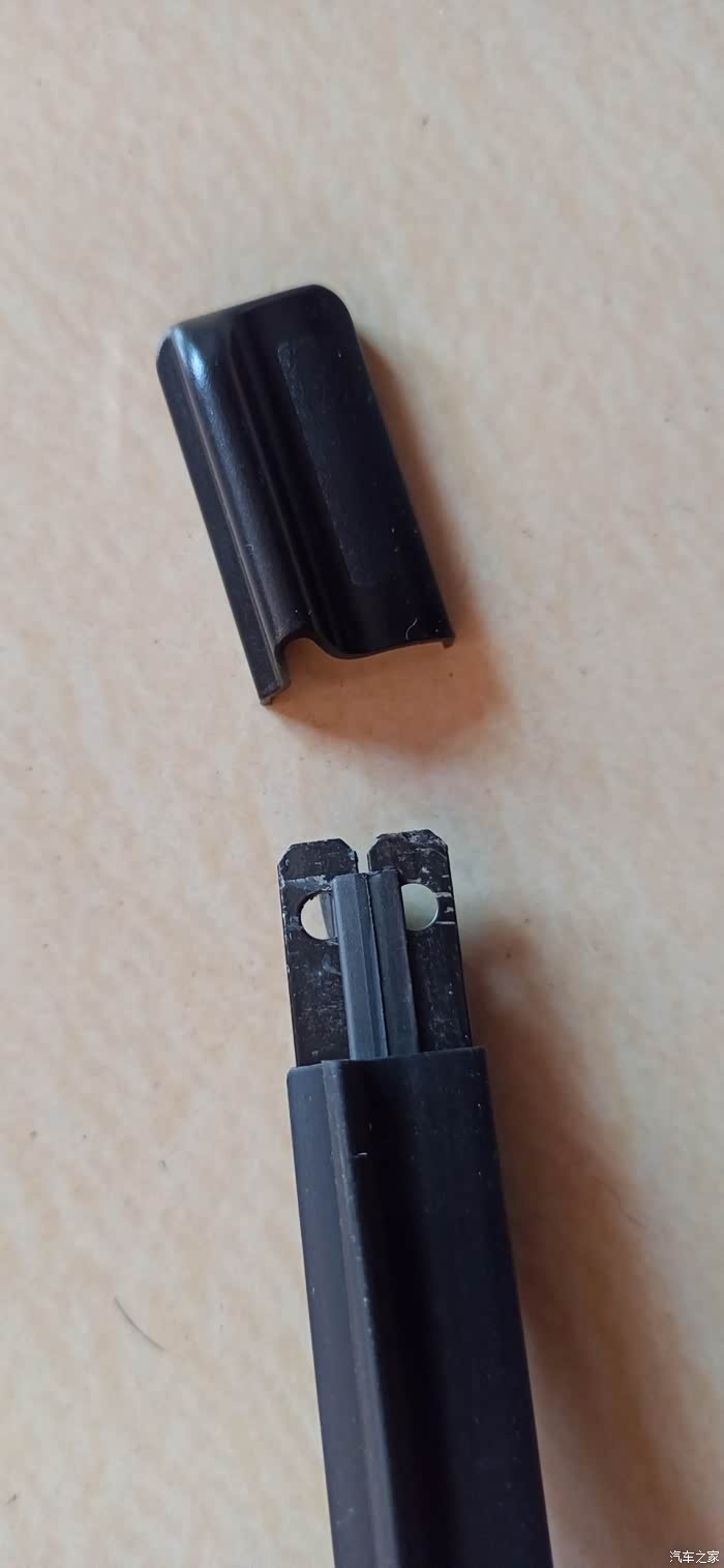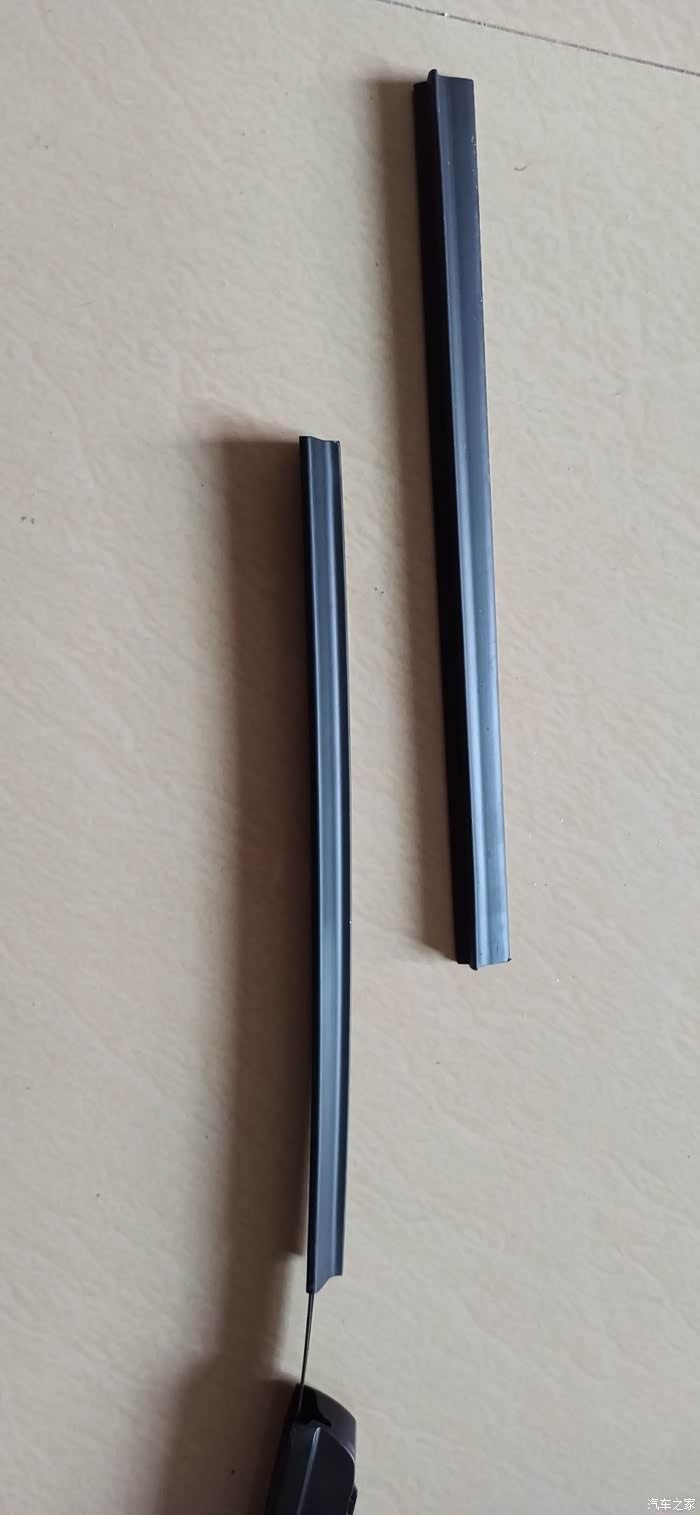 取出雨刷,可以看到是两条长短不一的胶条。
