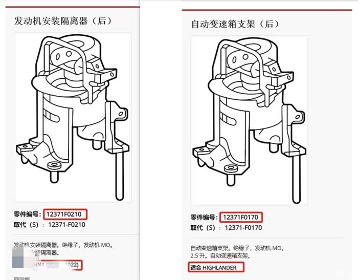 我立马有个大大的问号,虽然很难让人相信,以精益生产著称的丰田,居然把外观差不多的变速箱机脚胶装到了发动机上。可是从公告上看,它就是这么干了