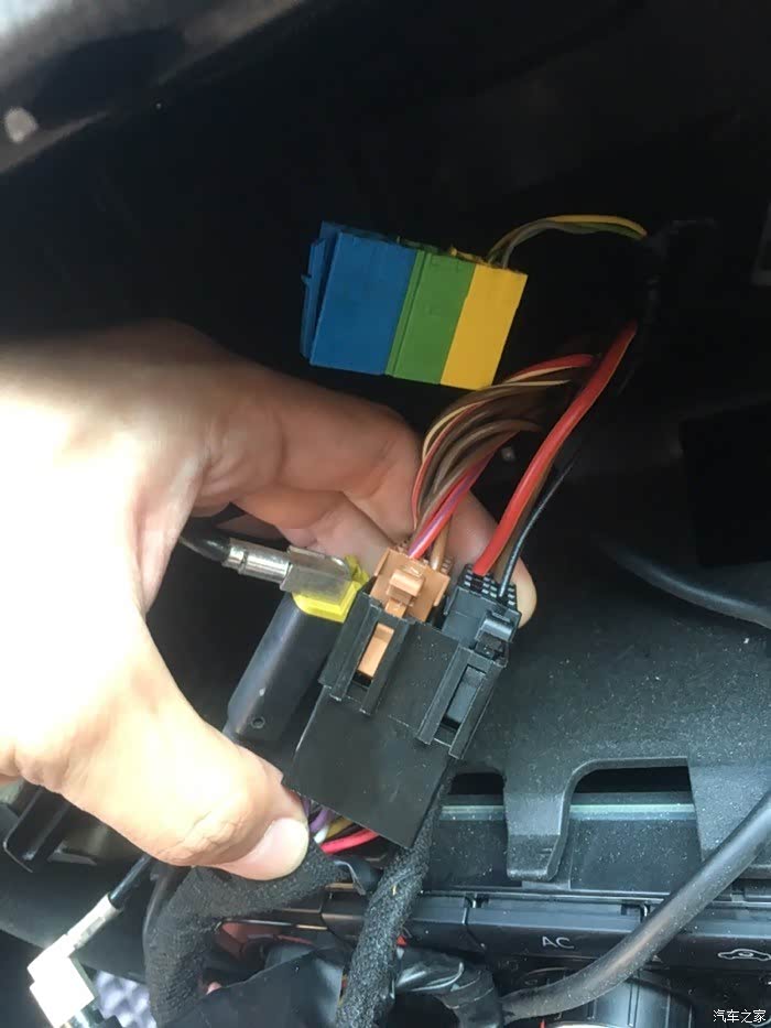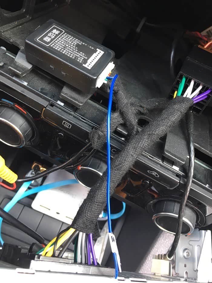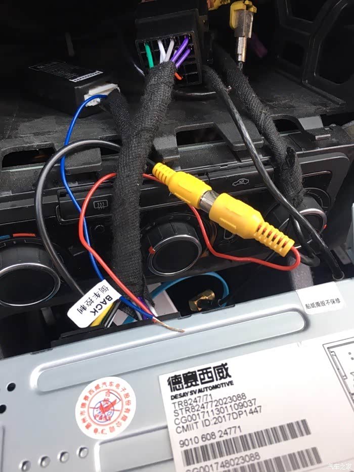接上倒车摄像头插头和倒车触发线,就这么简单,就接好了马上开机试。