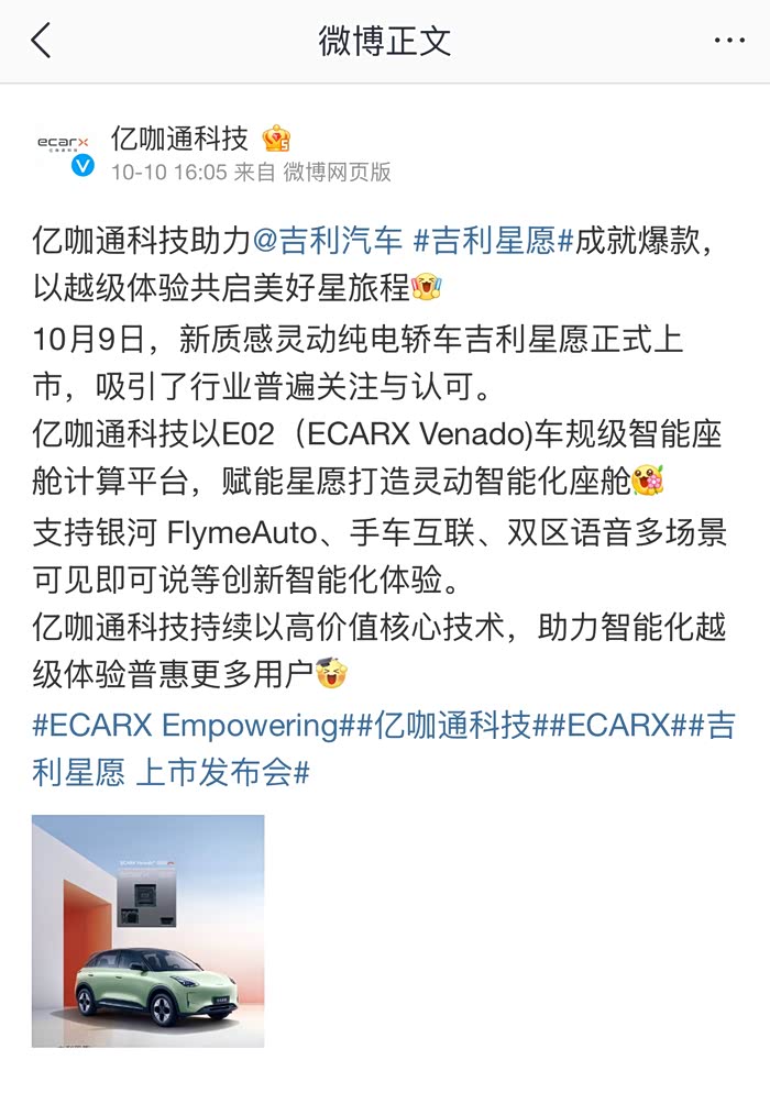 吉利星愿的车机芯片不是宣传的7纳米龍鹰一号,而是E02。
