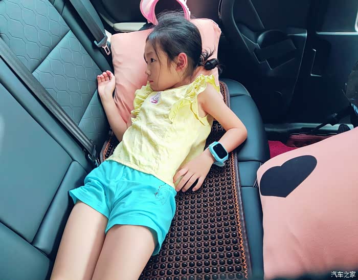 一上车孩子就躺下了,她身体一米二,躺下可以伸直腿,大狗座椅也比较宽,舒适性好,躺下来,休息一下,倒是挺舒服的。
