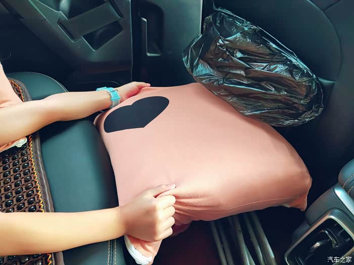大狗的后排空间,挺宽敞的,她爸身高178,在前面开车,调整好前排座椅,后排空间竟然还能放下一个40厘米宽的靠枕。