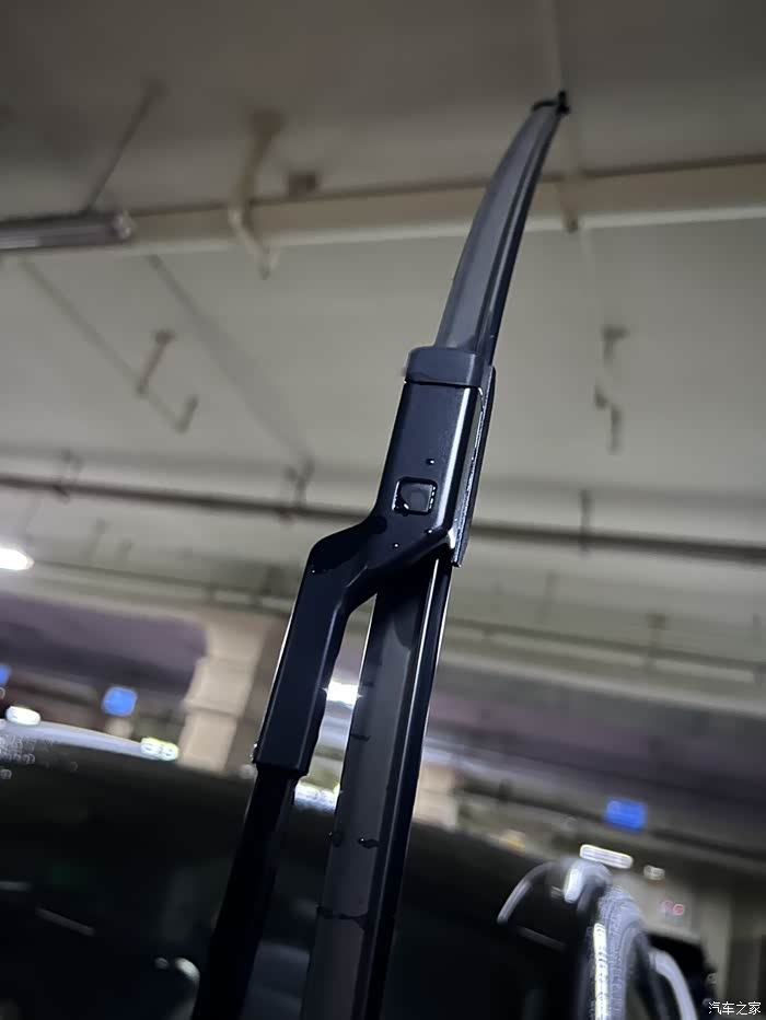 经验分享:雨刮的更换很简单,关闭电源后,车机屏幕有一个调整至维护位置,于是雨刮就会运行到风窗中间,我们将它立起来,可以自己清洁一下表面,更换的话就是按一下上面的方形卡扣,即可将雨刮器拿下来,进行更换。