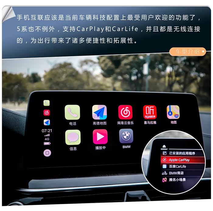 像智能降阻进气格栅,带LED随动控制的自适应远近光大灯,12.3英寸的全数字液晶仪表,12.3英寸的中控大屏,手机无线充电,11色氛围灯光,语音控制,手机互联以及无线CarPlay,还有如腾讯小场景等第三方合作以及车辆远程管理等等一众前瞻科技配置都以标配的形式出现在了5系上,即使525Li这样的入门版车型也不例外。更别说高配车型上以及可以选配的如香氛系统、HUD抬头显示、360全景影像系统、全速域自适应巡航系统、循迹倒车系统及更全面的安全辅助驾驶系统等更为先进的科技配置了,唯一让人不爽的,就是这些配置绝大多数都需要另外掏钱选装。还是那句话,都2021年了,当市场上的很多车型,尤其是国产品牌车型都普遍配备了丰富的安全辅助驾驶系统的时候,作为攫取了中国汽车市场巨额消费红利的豪华品牌在这方面却如此“落后”,我想这应该不是BBA等品牌后知后觉的原因吧。举个例子,你就更明白了,525是没有舒适进入的,5系全系座椅都采用了打孔工艺,但入门版车型是没有座椅加热的,更别说座椅通风了。举这个例子,无关钱包,只是希望5系在科技感的呈现上能更完善一些,给喜欢它的消费者提供更好的体验。