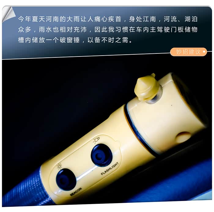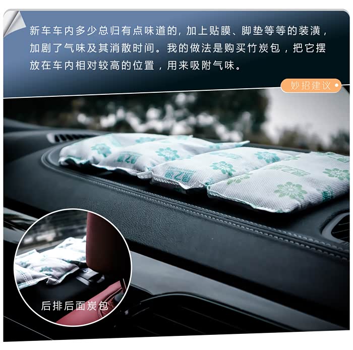 以上这些有些是开车的常识,比如通过雨刮器判断右前轮的位置,倒车时通过后视镜查看轮胎的位置,正确使用倒车影像及雷达等等,正所谓会者不难,车开久了自然而然就形成了常识了。有些是车辆的一些实用装饰,比如炭包吸附新车气味,前档遮阳帘,USB转接口,车窗膜,后保险杠的贴黑处理以及车衣等等,个人体验下来感觉是切实有效的。有些呢则是很无奈的选择,比如主驾驶的靠垫,自动启停的应对等等,这些不合理的配置已经存在了,咱们唯有用简单有效的方法来尽可能地抵消它们带来的不好的用车体验吧。有些则是每辆车都不尽相同的功能开发,比如快捷按键,空调最佳制冷效果的设定,中控屏幕组件的添加,低速拖拽感的抵消,驻车通风的使用等,这些呢其实翻看下随车使用说明书,一般都能找到答案。最后还有一些呢,则是事关行车、用车安全的,我觉得很有必要也一并说下,比如随车安全锤、充气泵的携带,AUTOHOLD的使用, 语音控制、蓝牙电话的使用,胎压监测及合理胎压的设定等等。