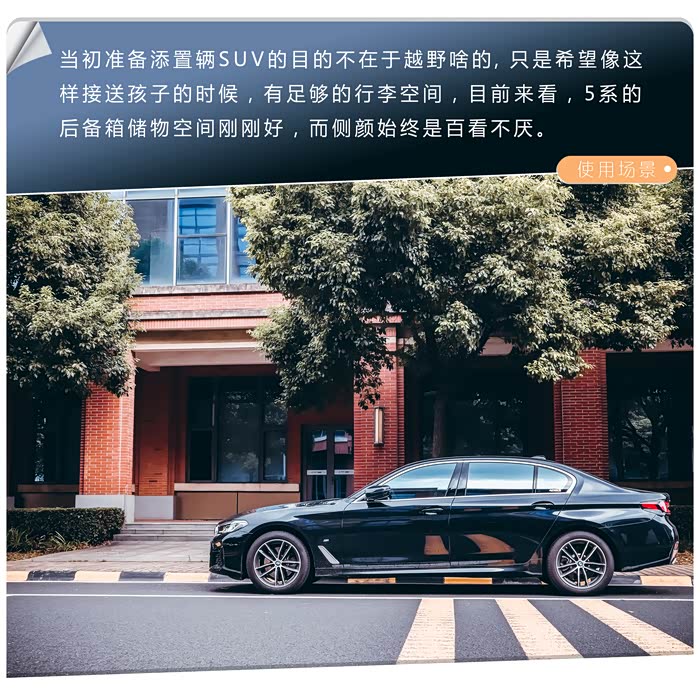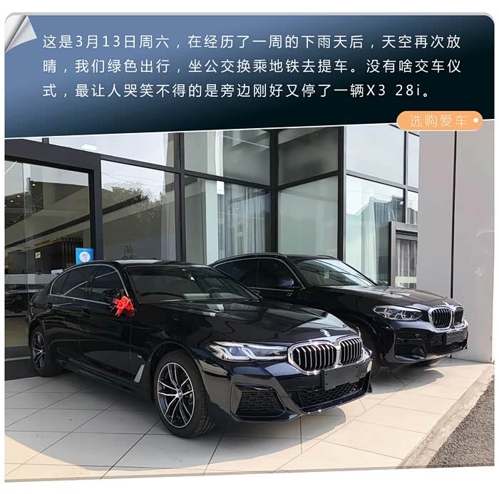 不管买车之前你有多茫然,不管选车之时你有多理智,不管提车之后你有多激动,若只能用一个词来形容这个过程的话,我想于我而言唯有“缘分”二字可以囊括之吧。正如我在3月提车后撰写的《三月春风来,有杏(幸)不需梅(媒)》中说的那样,虽然早至今年大年初四我便开始了今年的看车之行(之所以说是看车之行,而非选车之行,那是因为当时根本没确定今年一定要添置一辆车呢)。之后前前后后看了不少车,从最初心仪的model 3 Performance到非SUV不买的model Y、iX3,到彻底放弃电车,专注于传统燃油车型,期间也还曾漫无目的地看过多个品牌的多种不同车型,最后终于把目标落实在了奥迪Q5L 45运动型和宝马X3 28i上,又经过了对它们俩近两周的认真比对选择、试驾、谈价……末了,却转身提了一台从未考虑过的21款宝马525Li M运动套装版轿车。而这又是在对5系没有试驾,没有比对价格的情况,只用了不到15分钟便做出的决定,这或许是一个与我年龄极度不相符的行为,这或许也是“人生绕不开一辆蓝天白云”在作祟,所以这戏剧性的一幕,至今想来自己都觉不可思议,无法用言语来清晰地解释,似乎冥冥之中一切都安排好了似的,这一切发生得是如此的自然,水到渠成。如今用车已6个月,半年后再来看当时的这个决定,与新5系的结缘,确实是当时最佳的选择。 525Li车型与我这样的中年人对家庭的责任,对幸福生活的追求,以及爱车之人对个性的诠释最是契合。我也确信6月前提车那一刻的美好瞬间,亦是我生活中的一个小确幸。