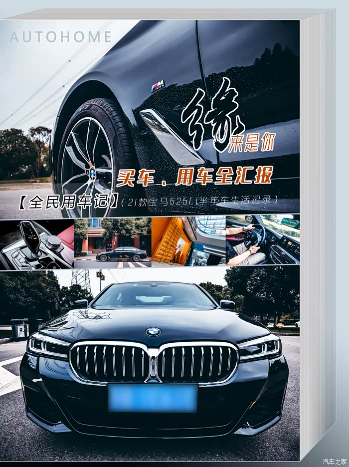 了解我的车友都知道,我是个爱车之人,因此即使提车前已经贴好了威固车窗膜(强制装潢包含的项目之一),在5月初还是撕掉原窗膜,重新贴了窗膜。又在被外卖小哥擦挂,付出一血的代价后,痛定思痛,又在高考那几天完成了车衣的装贴,一番折腾下来,算是花了一辆530领先版的钱,把一辆525基本“服侍”妥帖了吧。另外,个人感觉自己心思也相对比较细腻,毕竟这也不是我的第一辆车了,因此对车辆也有一定的感悟,半年的使用下来,对于21款525Li这款车型了解还是比较全面的。在这里先跟大家简单汇报下,虽然是一名驾龄20多年的老司机了,虽说如今的汽车出厂前也基本都完成了磨合了,但那指的不过是发动机的磨合而已,并不是最重要的人车磨合,包括刹车系统、轮胎,以及变速箱的自学习等的磨合尚需一定时日,这样才能在今后的车生活中获得合拍的、良好的使用体验。在此期间,我像一个善于发现、探究的孩子一般,逐渐发现了新5系的一众优点,当然也发现了它的许多不足之处(当然,其中有一些是因为我选购的是入门版5系车型的缘故),为此也多次撰文表达了自己的观点,获得了不少车友的肯定,当然也听到了一些不和谐的声音,这些都很正常,之家的每个车型论坛本就是一个开放的,供大家交流的平台,“有则改之无则加勉”嘛,这话适用于新5系,尤其是525车型,当然于我而言也非常适用。随着相处时间的增加,因为喜爱,我们便会对喜爱的东西产生越来越宽厚的包容心,而我恰恰也是一个偏感性的人,因此总体来说,这半年的用车体验还是不错的,随着对它的了解的增加,量变最终催生了一定的质变效果,一句话概括之:缘来是你,525Li M运动套装版这辆车我还是蛮喜欢的。
