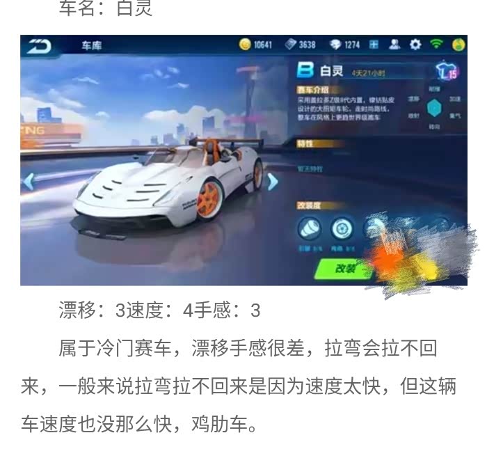最近小豪迷上了QQ飞车手游,一直在攒点券想入手一台永久B车,因为A车实在太遥远了。然后嘛,就被488帕加尼结合体感觉的百灵吸引力,等到攒够点券买下了之后,小豪看到了这个游戏网站的点评:百灵,鸡肋。到底鸡不鸡肋,买都买了,试试呗。