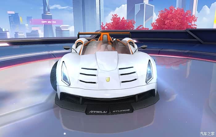 白色车身搭配橘色,很有赛车感。外观我想给9分,很漂亮。