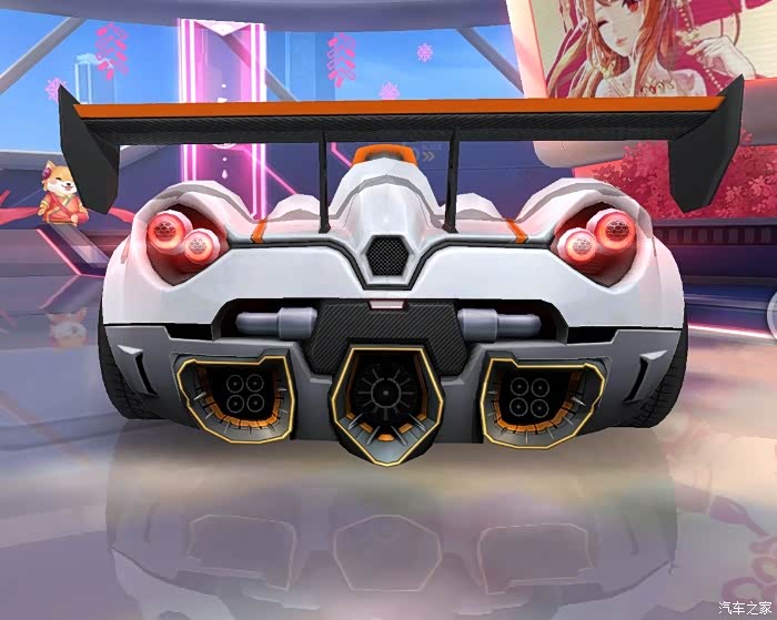 大型GT尾翼,同样是橘色线条搭配。三个喷口,B车标配