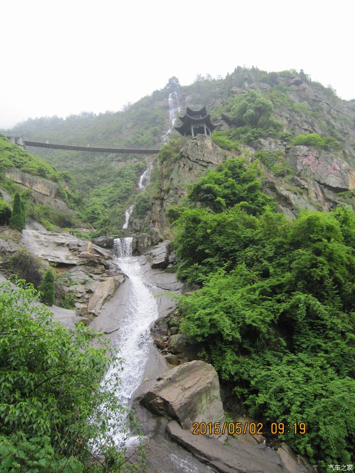 在中途的飞水瀑布景点歇脚。 继续大雨,全身湿漉漉的,鞋、膝盖以下裤子全湿。