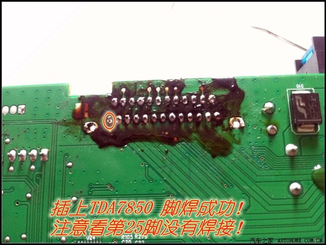 7388和7850同样是25脚功放块,在功能上基本一致,7850只是在16脚与25脚与7388稍有出入,不过通过替换、增加CBB电容和10K电阻接地,可以达到同样的定义!