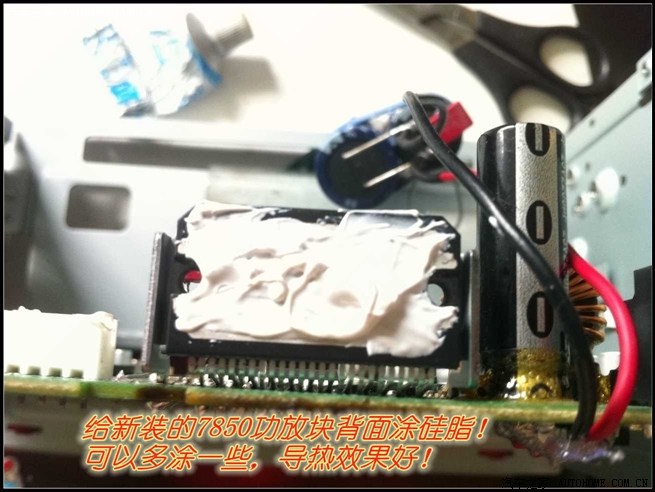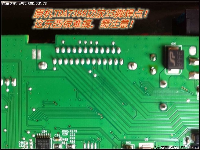 原机的功放块采用的是TDA7388 45w×4,而本次升级的是TDA7850 50w×4的功放块,从功率上得到了一定的提升。