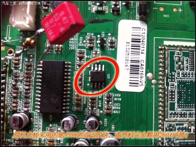 原机的运放块采用的是4558的运放,本次升级的是2604,同样都是八脚,且定义相同可以直接替换!