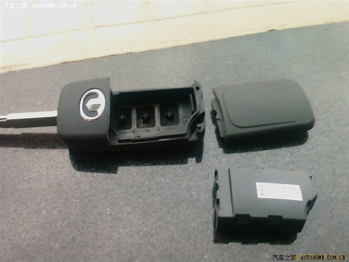 先拆外壳,从钥匙扣环旁边入手,用裁纸刀非常方便,轻轻的插进去一挑就开了。就是图中右侧部位。