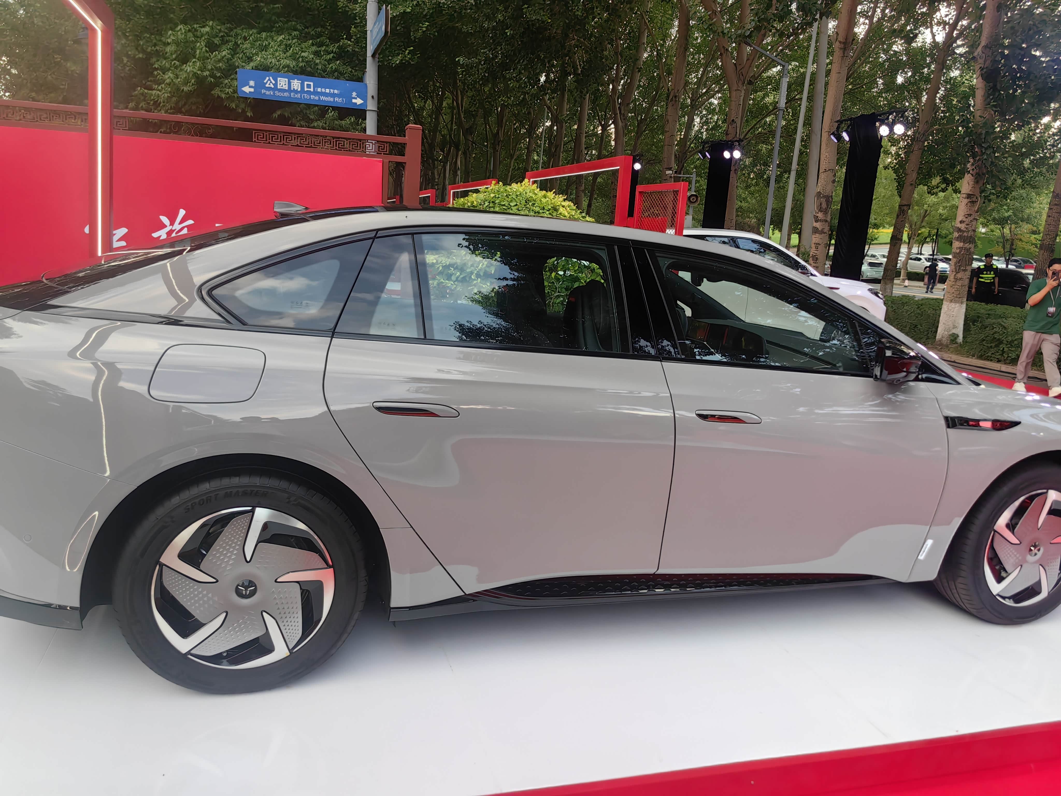 先看车头,“极光之翼”大灯真的很吸睛,据说是融合了锦鲤戏水的灵感,即使在静止状态下,也能感受到它散发的灵动韵味。大灯下方的进气口装饰并非简单的样子货,它的造型设计有助于优化空气动力学,减少风阻。中央的贯通式旗标,不仅是品牌的象征,点亮后的效果更是惊艳,仿佛一条光带贯穿整个车头,仪式感满满。